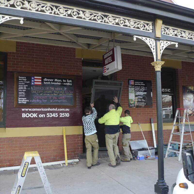 Early in its existence, the American became the rallying point for miners organisations and the centre for political gatherings and speeches. On one occasion, local electioneering included a Public Bar exhibition of appropriate cartoons drawn by teenage Percy Lindsay.