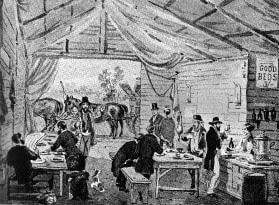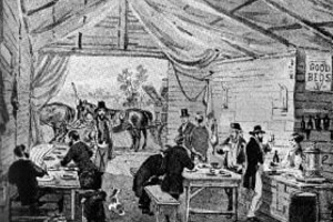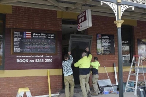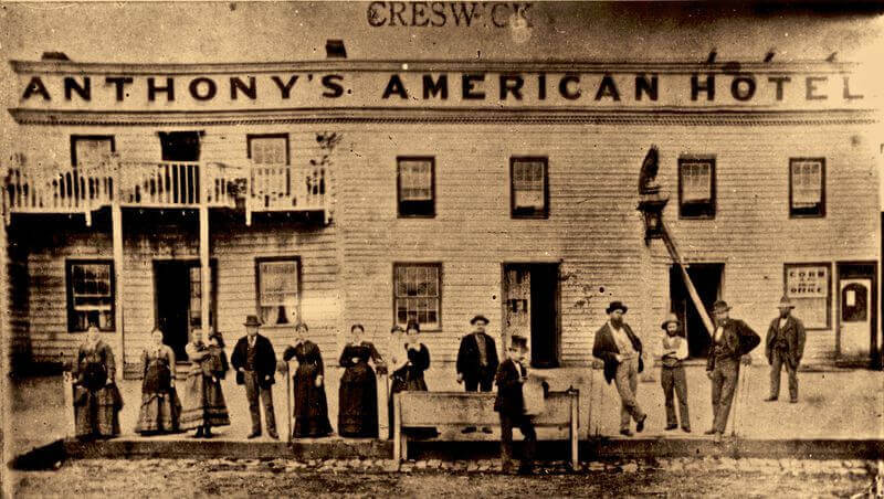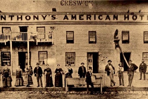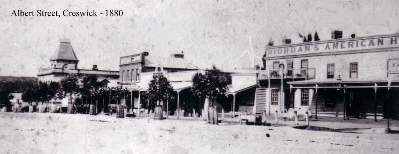 The American also housed, from 1859, the first thirty years of Creswick’s Havilah Lodge, and accommodated many of the district’s fledgling, but influential, organizations - the hotel was the unchallenged venue for banquets, political gatherings, major social functions, and meetings both annual and general, of spurious business, sporting, and civic bodies. Where else would the Borough Council adjourn when speeches, toasts and farewells were decreed? For over 15 decades significant social and political development took place in the American, which faces across Market Square. Even today it is involved in the development of Creswick, housing the registered office of the local Community bank company in 2007. At all times, the American contributed goodwill and care to a country town later famous for nurturing a remarkable number of national leaders, academics, businessmen, and artists. Prior to the opening of the railway line, the American’s role in communication was emphasised by housing the Cobb & Co. depot, for stages between Ballarat and Dunolly, and Ballarat and Castlemaine.